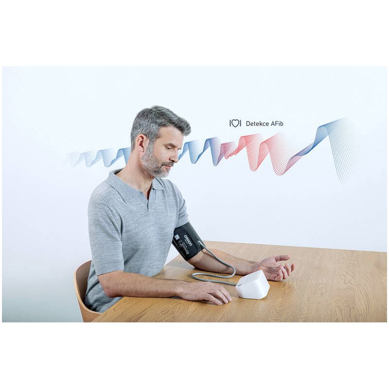 - Přístroj také detekuje možné příznaky fibrilace síní (AFib) při každém měření a upozorní uživatele na nepravidelnou srdeční akci. Při opakovaném zobrazení AFib konzultujte výsledky s lékařem.